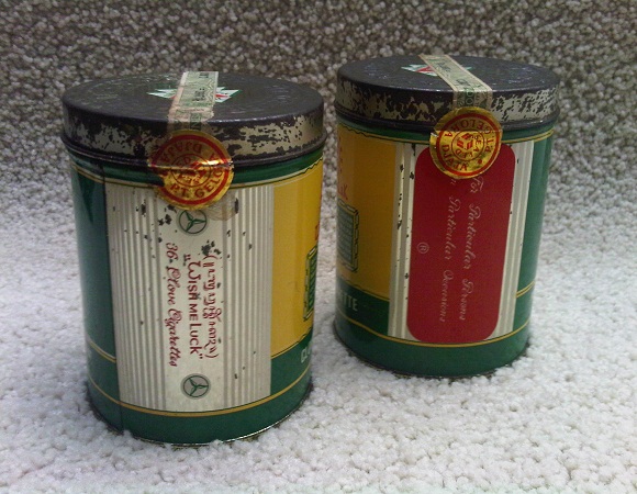 Rokok Wismilak - Clove Cigarettes. Pabr. Rokok P.T. Gelora Djaja, Surabaya. ,, Wish Me Luck " 36 Clove Cigarettes. Dua (2) buah rokok jadul Wismilak dengan kemasan kaleng (cigarette tin), kondisi original NOS belum terbuka (masih tersegel) dan tertera label dengan harga bandrol lama yaitu Rp. 2.650,- isi 36 batang. Pada tutup dengan tulisan motif timbul dan dibagian kaleng terdapat tulisan menggunakan huruf Jawa dan bahasa Inggris (lihat foto ke-2), ada sedikit penyok. Untuk rokok masih mint bisa dilihat seperti pada posting rokok Wismilak sebelumnya yang kondisi kaleng sudah terbuka. Kaleng dengan ukuran tinggi = 9 cm, diameter = 7 cm. Cocok bagi para kolektor rokok untuk melengkapi koleksi rokok dan iklan reklame antik kuno.